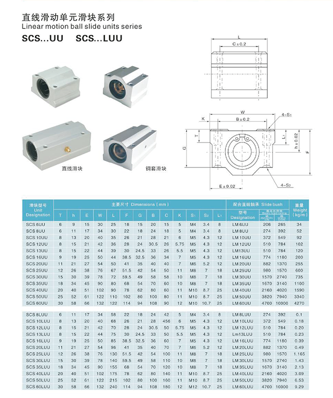 直線滑動單元滑塊系列SCS...UU SCS...LUU